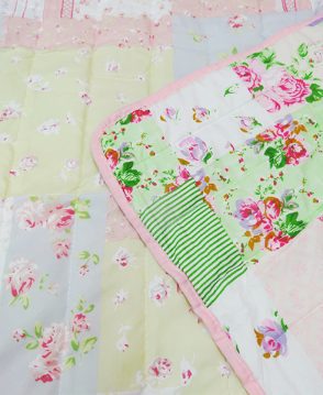 Двулицево шалте 02/150/200 е свежо и нежно допълнение към интериора на вашата стая и легло. Платът е мек и приятен на допир. Цветовете са деликатни и нежни. Освен като шалте може да се ползва и като пролетно-лятна завивка. Използвана е техника за капитониране, което придава лек обемен вид на покривалото.