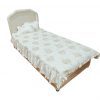 Кувертюра за приста Лято е изработено от плат сатен. Капитонирана е по метода на ултрасоник прошиване с нетъкан текстил, което придава плътност и красота на кувертюрата. Къдравите драперии по дължината на покривалото и декоративните калъфи за възглавници са допълнителен нежен акцент към декора на леглото.
