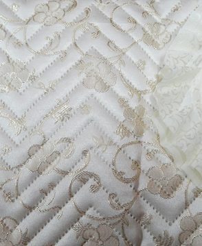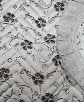 Кувертюра за спалня Детелина е изработено от плат ламе. Капитонирана е по метода на ултрасоник прошиване с нетъкан текстил, което придава плътност и красота на кувертюрата. Къдравите драперии по дължината на покривалото и декоративните калъфи за възглавници са допълнителен нежен акцент към декора на леглото. Цветовете са с флорални мотиви. Повечето от тях пресъздават ориенталски дух с използваните сребърни и златни нишки при изтъкаването на самият плат.