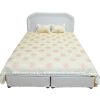 Кувертюра за спалня Мак е изработено от плат сатен. Капитонирана е по метода на ултрасоник прошиване с нетъкан текстил, което придава плътност и красота на кувертюрата. Къдравите драперии по дължината на покривалото и декоративните калъфи за възглавници са допълнителен нежен акцент към декора на леглото. Цветовете са в нежни прасковени нюанси.