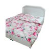 Спален комплект за приста – Розов букет изработен от плат микрофибър /100% полиестер/ в красиво съчетание на пепелно-сиви цветове и прекрасни рози. Олекотената завивка е с пълнеж от 100 % силиконов пух – 400 г/м2.